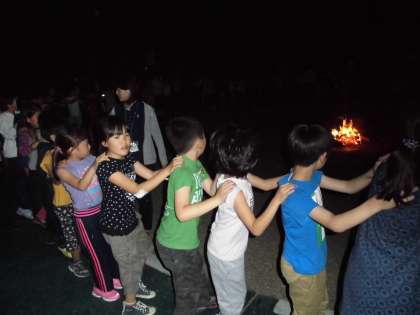 キャンプファイヤーは、レクリエーション係の子どもたちが、今までの練習の成果を発揮して、全て自分たちの力だけで進めてくれました。
