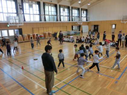 中間休みには、運動委員会主催のドッジビー大会が始まり、1年生の男の子たちが登場。とてもよい試合を繰り広げました。