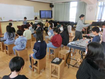 音楽科では「パフ」の合奏。素敵なひびきを奏でます。