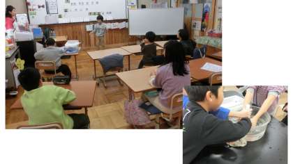 教室では、みんなで言葉や数の学習。進め方にもすっかり慣れ、お友だちがお話しているときも耳を傾けます。また理科の交流では、積極的に実験に関わって学習に取り組みました。