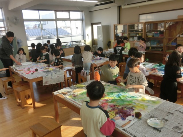 図画工作科「ぺったんコロコロ」では、ぺったんしたりコロコロしたり…体を使って創作活動を楽しみました。