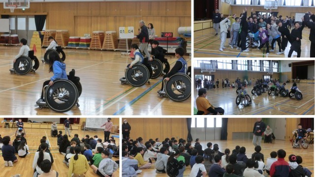 4年生の紫野タイム(総合的な学習の時間)に、車いすバスケの選手の方や指導者の方にご来校いただきました。
