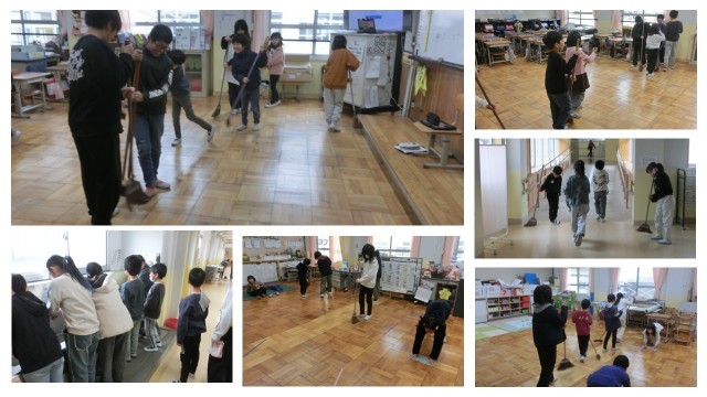 中には、協力して掃除をする方法がどんどん工夫されて機能的になっているグループも見られます。
