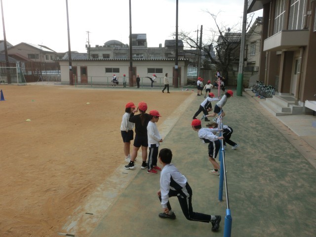 体育科では、サッカーや鉄棒の学習を行いました。寒い中でしたが、笑顔で走ったり体を動かしたりし、「こんなことできたよ」「見てみて」と声をかけてくれました。