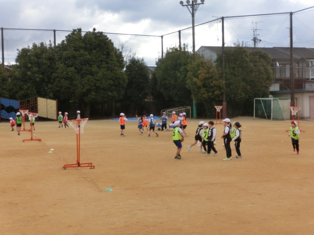 体育科では「パスゲーム」に取り組んでいます。前向きな声かけが増えて、活気にあふれています。