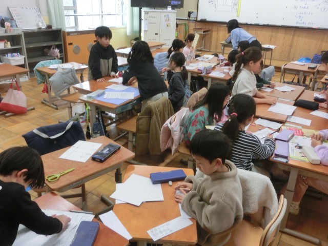 生活科で行った「まちたんけん」発見したことをまとめたり発表しました。聞く側も、とても興味深そうな様子でした。
