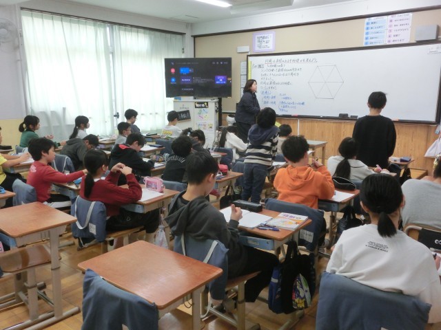 算数科では、円周は直径のおよそ何倍かを考えました。思考の見通しを共有し、じっくり考えます。