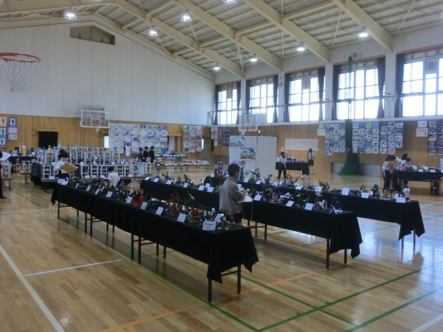 作品展の鑑賞を行いました。他学年の作品に感心する様子も見られます。ほかの学年・クラスも、順に鑑賞します。