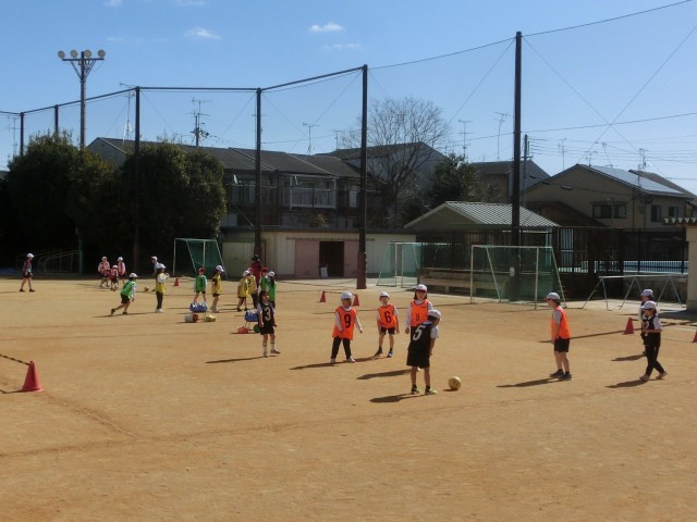 体育科ではボールけりあそびをしました。気分はサッカー選手になって、運動に親しみます。