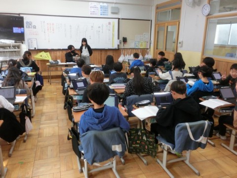 国語科では、心が動いたことを思い出し、端末で詩に表現しました。