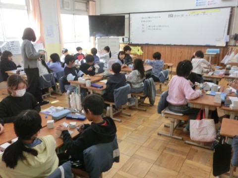算数科では、直方体の箱を辺にそって切り開いた形~展開図~をかきました。