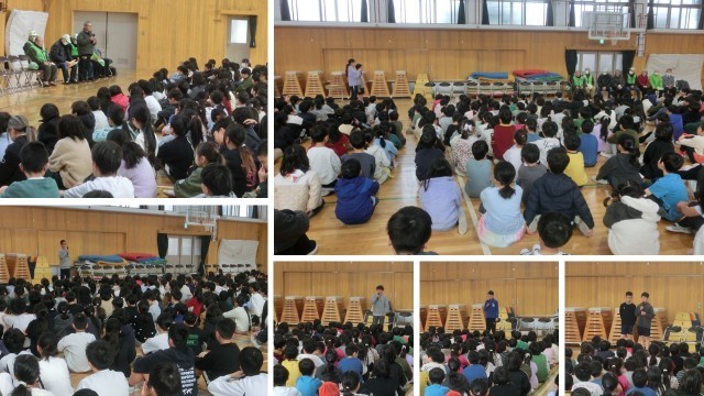 続いて3月の朝会を行いました。見守り隊のみなさんのように、他者を思いやり、尊重する心をみんなで大事にしたいね、という話がありました。