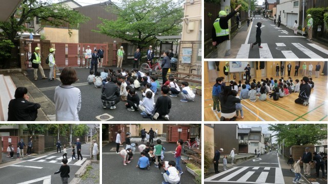 交差点や横断歩道の歩き方を教えていただき、学校の前でも練習しました。登下校でも今日の学習を生かしてくださいね!