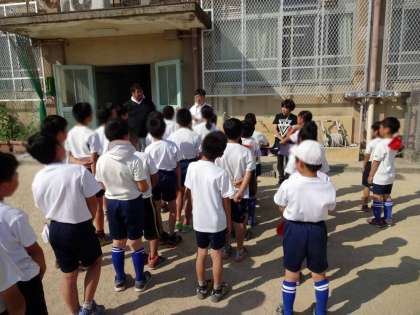 19日(月),部活動「サッカー」が始まりました。今年は,どの学年もバランスよく参加しています。開講式の後,子どもたちはさっそく元気よくボールを蹴りだしまし。PTAやおやじの会の方にも活動のお手伝いをお願いしています。一年間どうぞよろしくお願いします。