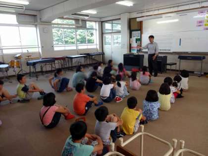 23日(金),部活動「音楽」が始まりました。3年生以上の音楽が好きな子どもたちがたくさん集まってきました。開講式の後,自己紹介では,自分の好きな楽器も紹介しました。この人数で歌ったり合奏したりすることが楽しみです。また,「音楽隊」での活躍も期待しています。