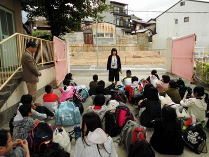 予定より少し遅れて,学校に6年生の子ども達が帰ってきました。