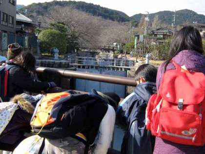 4年生が,琵琶湖疏水の社会見学に行ってきました。疏水のスタート地点の大津市三保ヶ崎の取水口,第1トンネルの東口を見学しました。その後,京都に戻り,蹴上周辺のインクライン線路,疏水分線,水路閣を見て回り,明治時代の先人達の努力と工夫を感じて帰ってきました。
