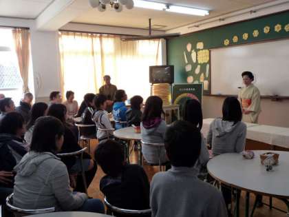 3月4日,卒業茶会を行いました。部活動茶道部の6年生が着物姿でお茶を点て,まず地域の方や保護者にお手前を披露しました。その後,卒業する6年生全員でお茶席をもちました。お茶席の前には,陶芸家の先生や茶道の先生から卒業にむけて貴重なお話をいただき,神妙な面持ちでお茶席につきました。いただいたあとには,全員が茶筅でお茶を点てる経験もしました。