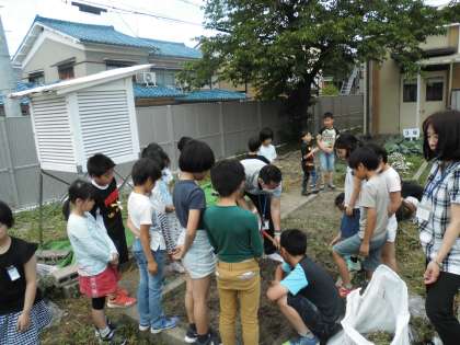 透明な空き容器に色を塗って,地面に映った模様を楽しむ学年もありました。