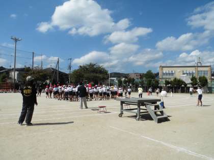 休憩をはさんで,1・3・5年生の練習でした。初めての大玉に,1年生は興奮していました。経験者である3・5年生が声をかけて,うまく導いてあげていました。