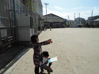 思ったより高い空に月が見えたので,子ども達は意外そうに昼間の月を見ていました。