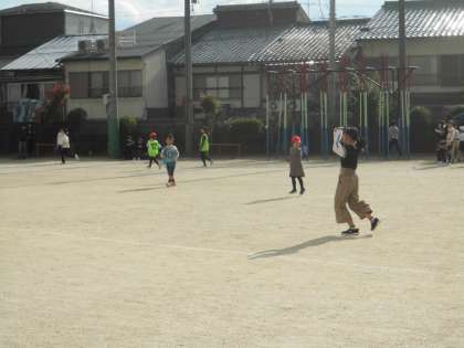 午後からよく晴れて,子ども達はたて割りグループで運動場と体育館で元気に遊びました。