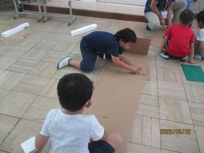 今日も色々な材料から,遊びやおもちゃをつくりました。