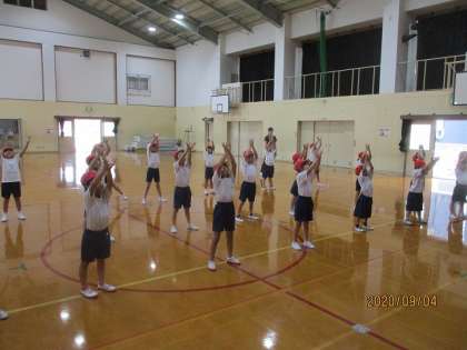 今日も1・2年生で一緒にリズムダンスの練習に取り組みました。