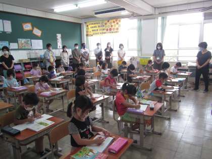 1年生は,入学以来初めて,おうちの方々に学習している様子を観てもらいました。