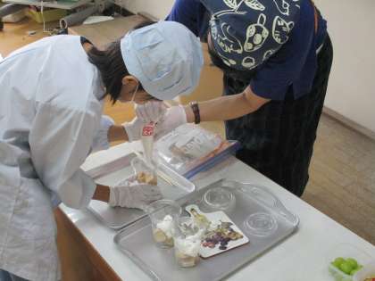 今日は,作り方や気をつけることを振り返り,材料の数を数えたり,量を考えたりしながら,順番に上手にフルーツパフェを作ることができました。