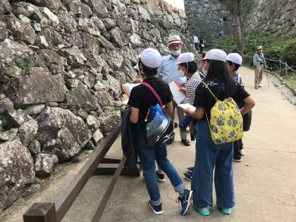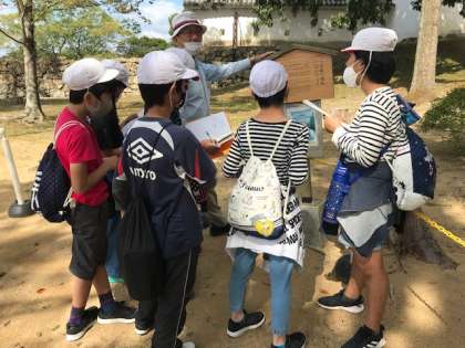 姫路城ではガイドさんについていただいて,説明を聞きます。