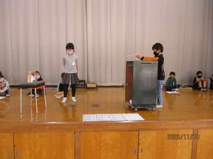 今日は生活科の「あそんで ためして くふうして」の発表の練習に取り組みました。