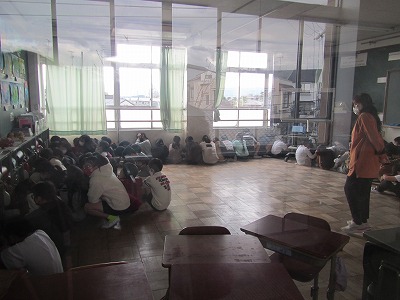 避難後,全員で「イカのおすし」を確かめて,教室に戻り,クラスで振り返りました。