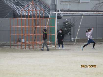 雪がちらつく寒い日になりましたが,子ども達は元気いっぱい,運動場で走り回っていました。