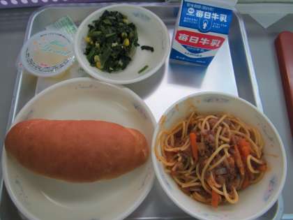 14日,1年生にとっては,小学校の初めての給食でした。