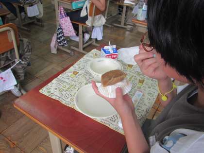 ごはんをおかわりした子も「おなかいっぱいだけど,別腹だった!」「甘いの苦手だけど,牛乳と一緒に食べたらおいしかった」「甘くておいしかったよ」「最初はいやかなと思っていたけど,だんだんおいしくなってきた」と,手作りの和菓子のおいしさに触れていました。