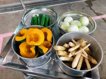 子どもたちは、「かぼちゃのみそ汁、甘かった」「きゅうり苦手やけど、がんばって食べたよ!」「たくさん食べてお腹いっぱい…」「また作ってねー!」と、笑顔で伝えてくれました。