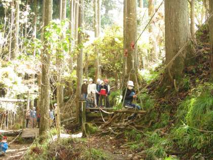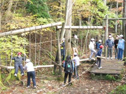 到着後最初の活動は,「冒険の森」アスレチックです。