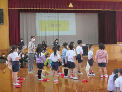 最後には,みんなでなかよくなるためのゲームをしました。感染症予防のために無言でゲームをしたので,ちょっと難しかったのですが,全校児童110名の子どもたちが協力して楽しくゲームをすることができました。