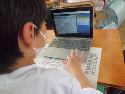 今日は自分のパスワードを入力して無事ログインした後は,初めてみらいシードに挑戦!!算数のドリルで自由に学習を進めることができました。問題に挑戦し,正解するとポイントがたまっていくので,みんな大喜びでした。