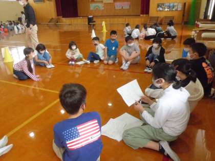 最後にたてわり活動の説明があり,各グループでたてわり活動の時間にどんな遊びをするか話し合いました。