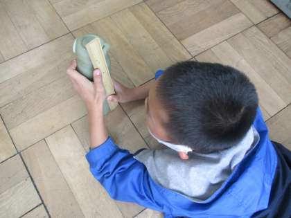 その後は,自分の持ち物など身の回りの長さを,予想を立ててから測りました。
