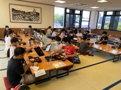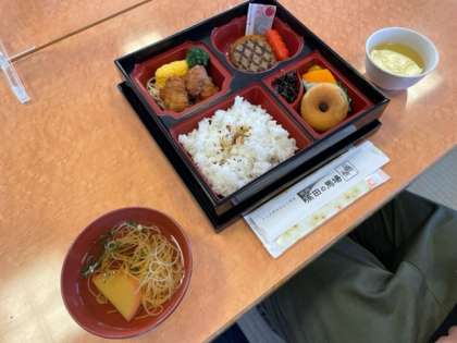 たくさん歩いて、階段を登って降りて、お腹もすきました。美味しそうな幕の内弁当です。