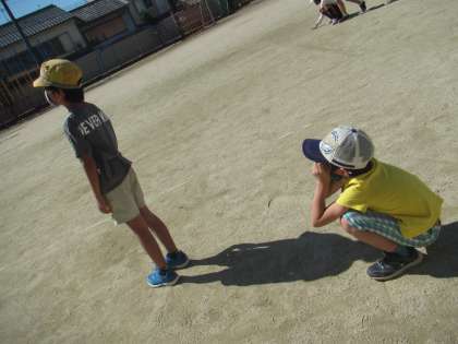 太陽は、できている影の反対の方向にあることをみんなで発見し、正しい太陽の見つけ方を学びました。
