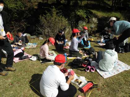 自然の中でご飯を食べて,とっても気持ちよさそうでした。