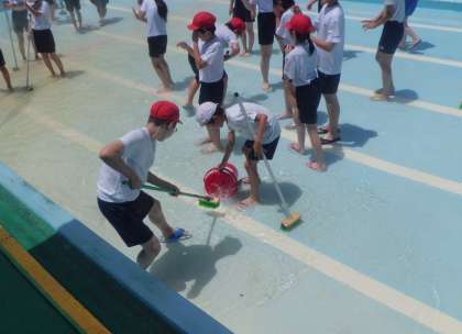 みんなでプールそうじ