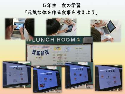 昨日、5年生で食の学習「元気な体を作る食事を考えよう」を行いました。