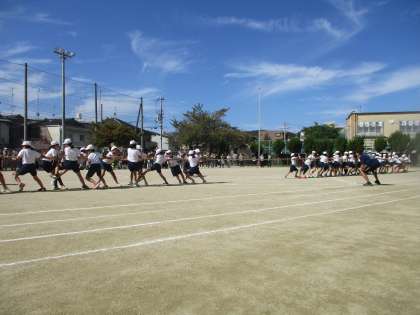 チームは3種類(平均身長、町南北、じゃんけん勝負)で、それぞれ2回戦行います。力を合わせて綱を引きます。