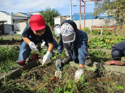 今日は楽しみにしていたいもほりの日です。たくさんできているかな?大きいのができているかな?と子どもたちは朝からワクワクした様子でした。