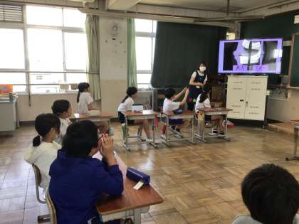 今年度初めての身体計測がありました。まず、養護教諭から身長が伸びることや体重が増えることの仕組みを教えてもらった子どもたち。「意外と知らなかったなぁ。」と反応していました。